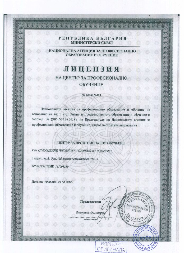‘Лицензия5’ Published 18.07.2018 at 700 × 960 in Русенска стопанска камара ще изгражда професионално училище (в-к Утро) ‹ Back